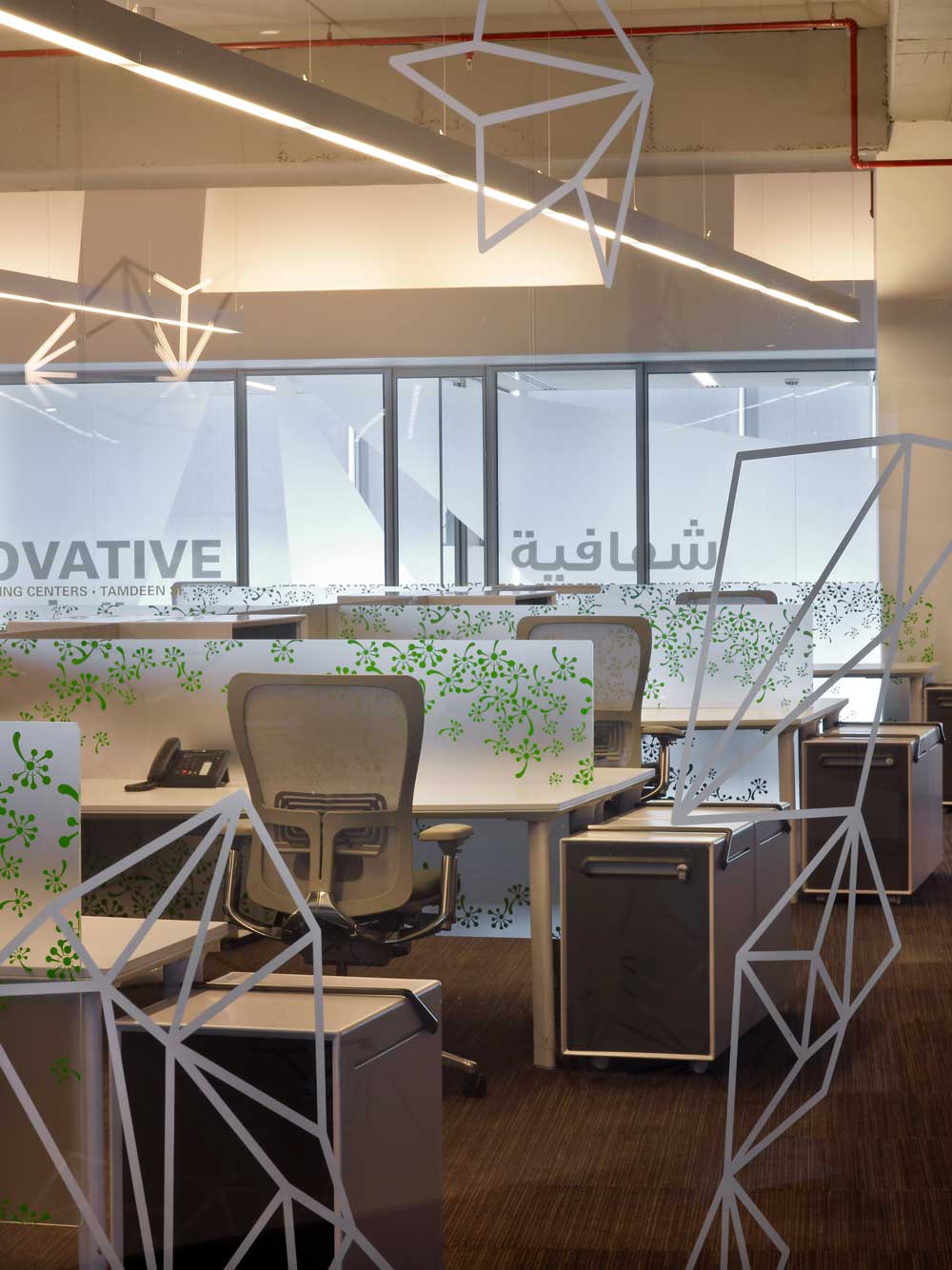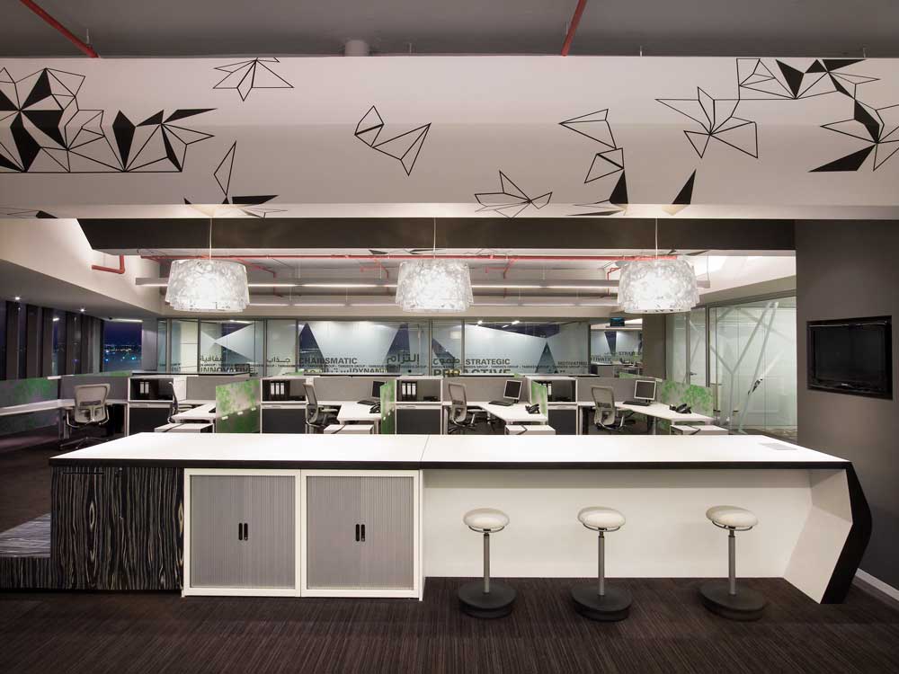 In addition to honoring the Tamdeen Group's commitment to its community and history, there was also a need to celebrate its diverse international workforce. With Colacion Studio's attention to work and play, the firm created a planning and design approach which spoke to each person's professional and community personas, reinforcing the diverse cultures within Tamdeen Group. It was this approach, which assisted the firm in creating a visually exciting and dynamic environment celebrating its culturally eclectic workforce.